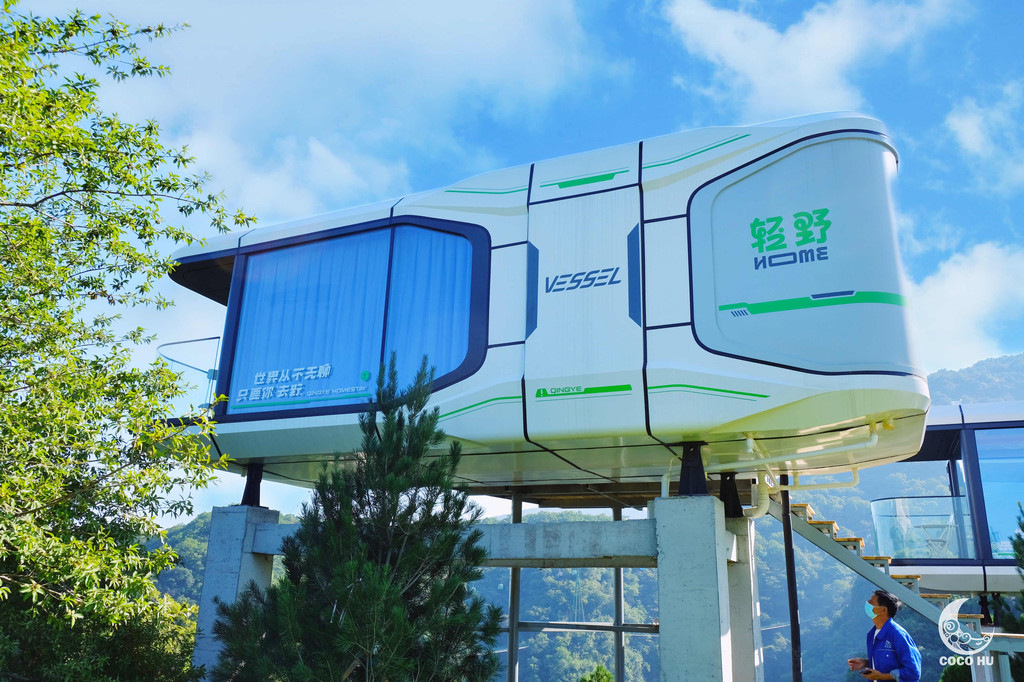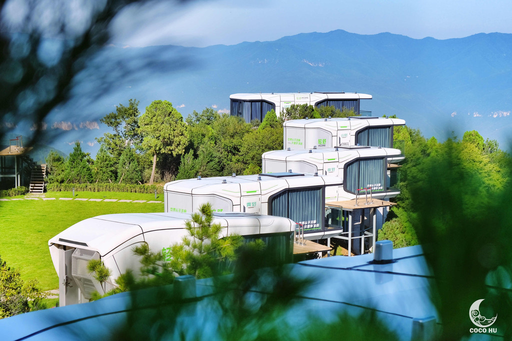 轻野HOME的造型具有强烈的视觉冲击力,充满未来感!每个房间皆为独立的太空舱,270°的环绕立体窗,不出舱门即可尽赏美景。几间太空舱围成一个半圆形,像是降落在太空丛林里的战队,与周围环境完美结合。住在这里,就是要将自己彻底交托给周遭环境,与云海、星河融为一体。