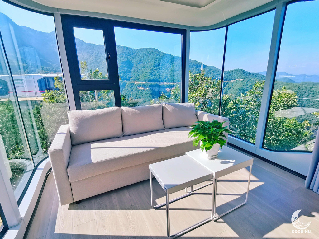 在轻野HOME,最让人欣慰的,是能借此窥见国内民宿业者对“野奢度假”的理解和诠释。充满科技感的不仅是造型,还有贯穿始终的细节。全铝合金外壳,背部含有降噪处理,减少雨声、风声等噪音影响,使全屋隔音性能优越。