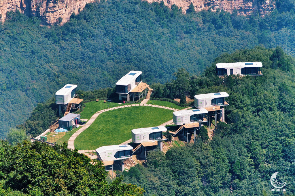 轻野HOME 入住悬崖上的太空舱在没来到这里之前,你很难想象居然会有轻野这样别出心裁的民宿。真想亲口对它的设计者和开发者道声谢!一种遗世独立的美好,在云丘山的半山腰赫然展现在人们眼前。