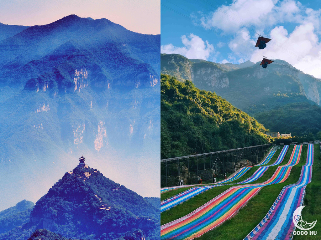 2017年,景区投入运营了蹦极、空中飞人、滑索、旱地滑雪、悬崖秋千、玻璃吊桥等项目。景区的山山水水,也在这些娱乐项目和年轻游客的欢笑呼声中,变得愈发青春,充满活力!从玉皇顶沿途而下,几乎所有游玩项目都是下山顺路途径的,所以最好的方式是步行而下。