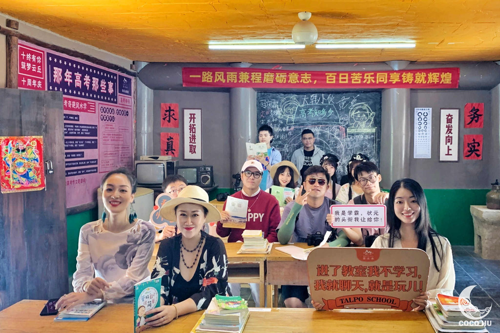 古村的小学校旧址,也被完好地保留了下来。室内的装饰完全穿越回几十年前。大家在教室里落座,拍下一张充满童心的合影。在这样的古朴与纯净的环境中,每个人都完全敞开了心扉。这一天,我们都是云丘山的孩子!