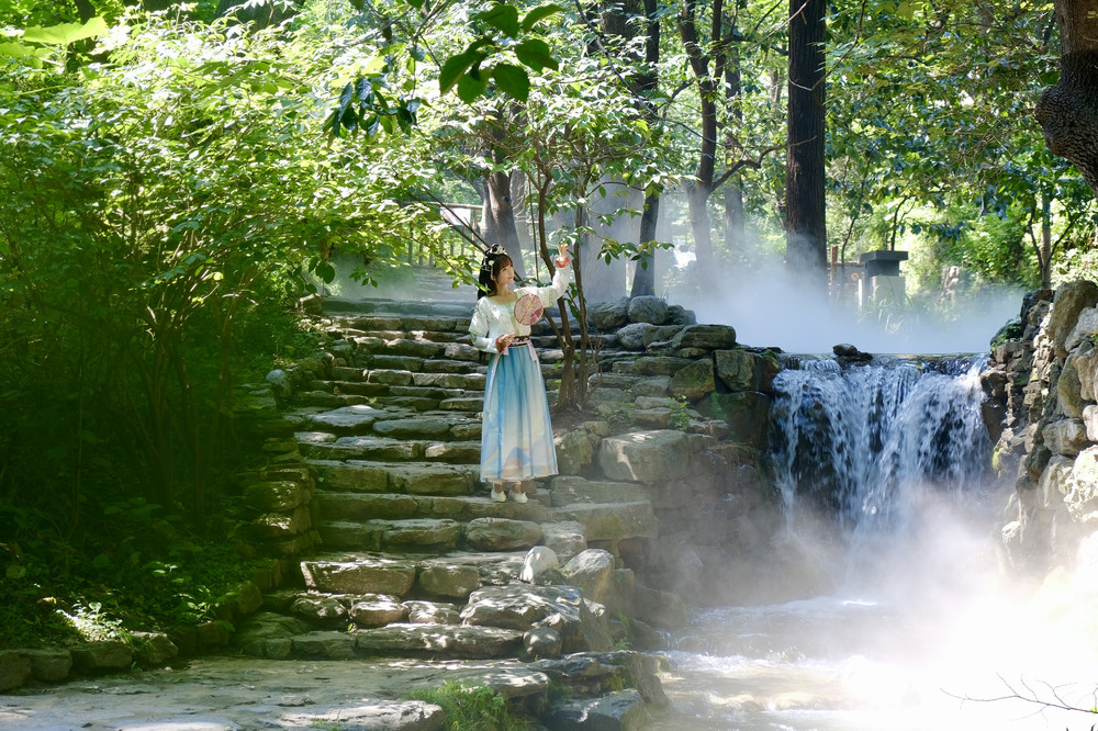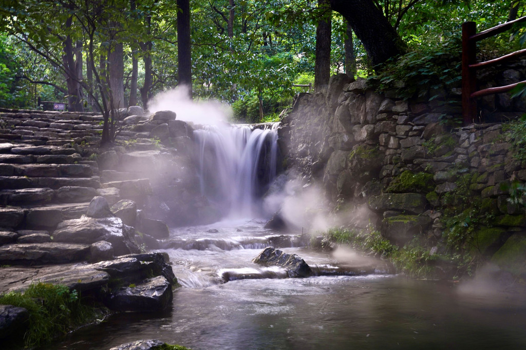 民宿附近还有着距今2500年历史的古村落——塔尔坡古村。塔尔坡古村位于神仙峪的神塔附近,一路顺潺潺溪流而上,当郁郁葱葱的翠色中出现一片迷人瀑布,水花在阳光下起舞,掀起飘渺的仙雾,一时竟让人分不清这是人间还是仙境。