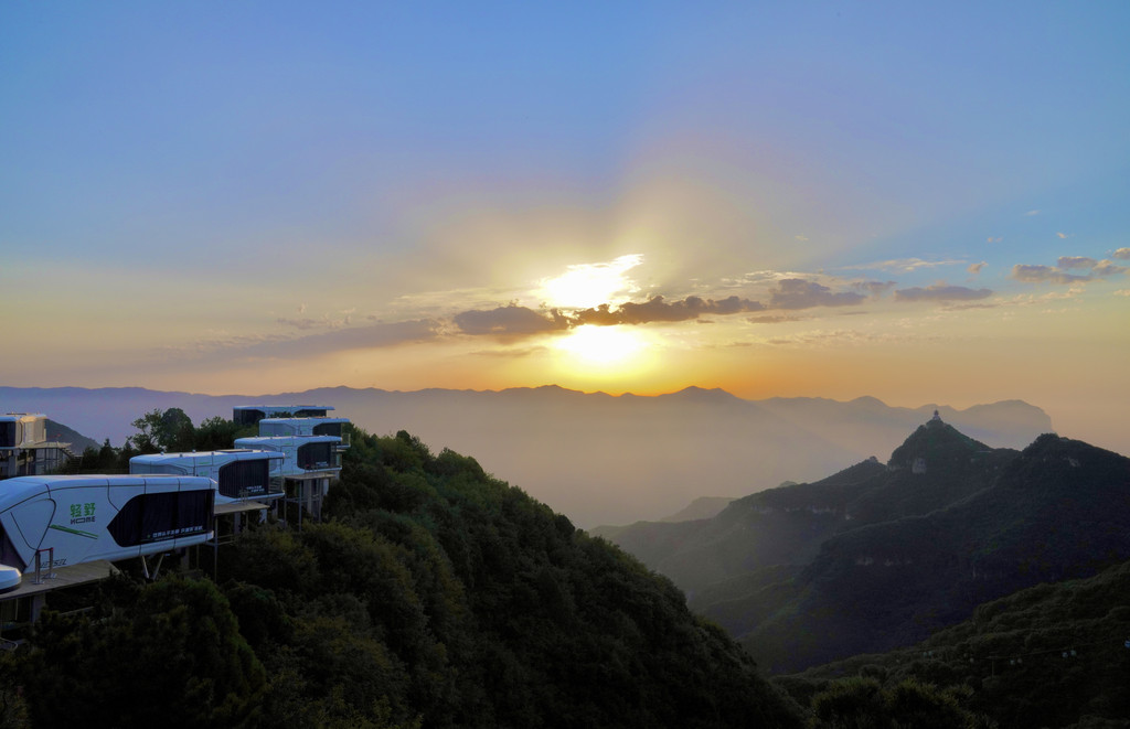如果你流连于山顶的浪漫,那么你可以选择住在山西云丘山山顶的轻野home。这是一座浪漫到极致的悬崖民宿,将大自然的天赐美景最大限度融入进房间里,于海拔1330米之上,太空舱风格10间全景玻璃房,躺在床上便可270度欣赏山峦叠嶂,看日出日落,屋顶有大大的透明天窗,夜幕下枕星河入梦,与山水同眠。