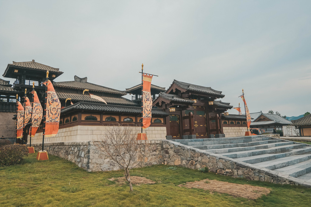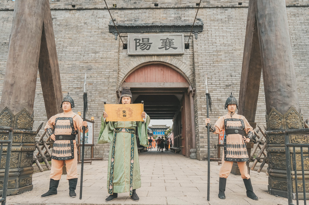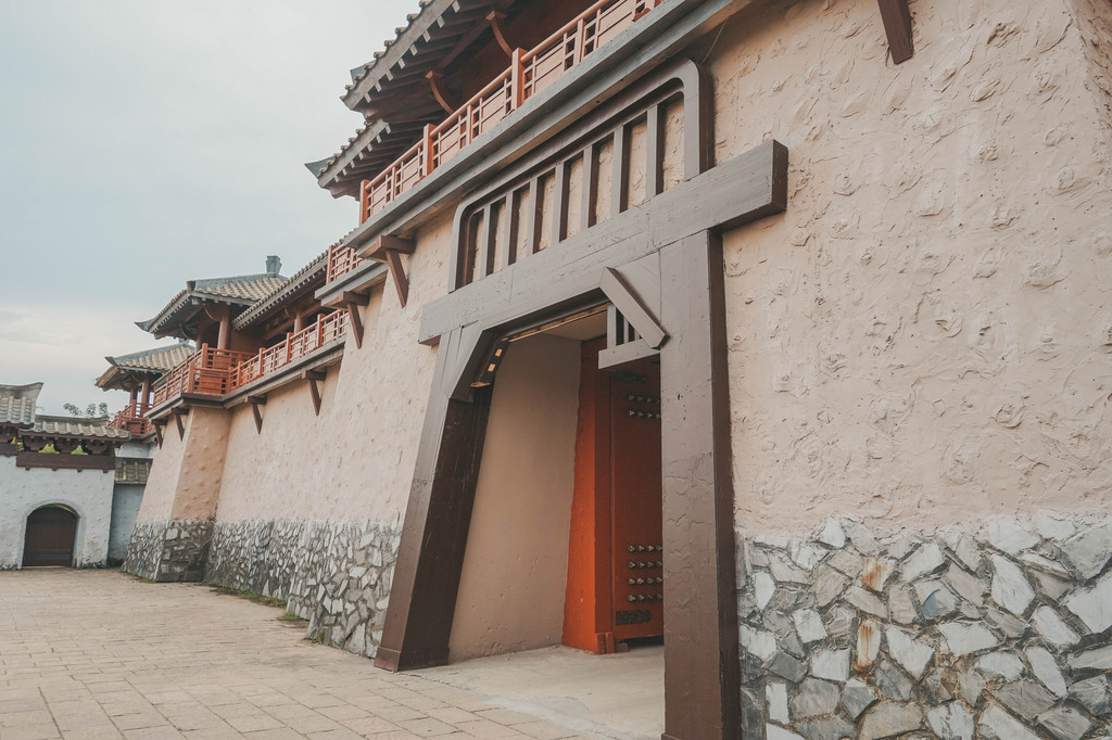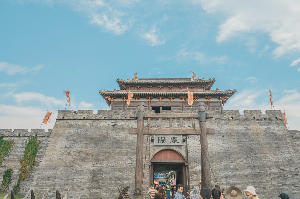 襄阳城堪称神雕侠侣城里最重要的存在,位于北大门, 长400米、高10米、宽6米的城墙巍峨耸立,有造型各异的两座城门,气势磅礴,它最初是拍摄《神雕侠侣》襄阳大战的取景地,也是《琅琊榜》电视剧中的金陵城。