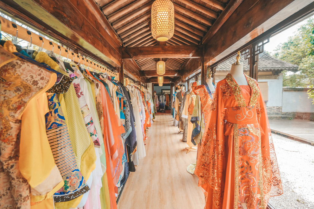 很多游客都身穿汉服,在景区的各个角落圆一把穿越梦,没有带汉服的游客亦可租借景区的汉服,不仅款式多,还有妆发可选。