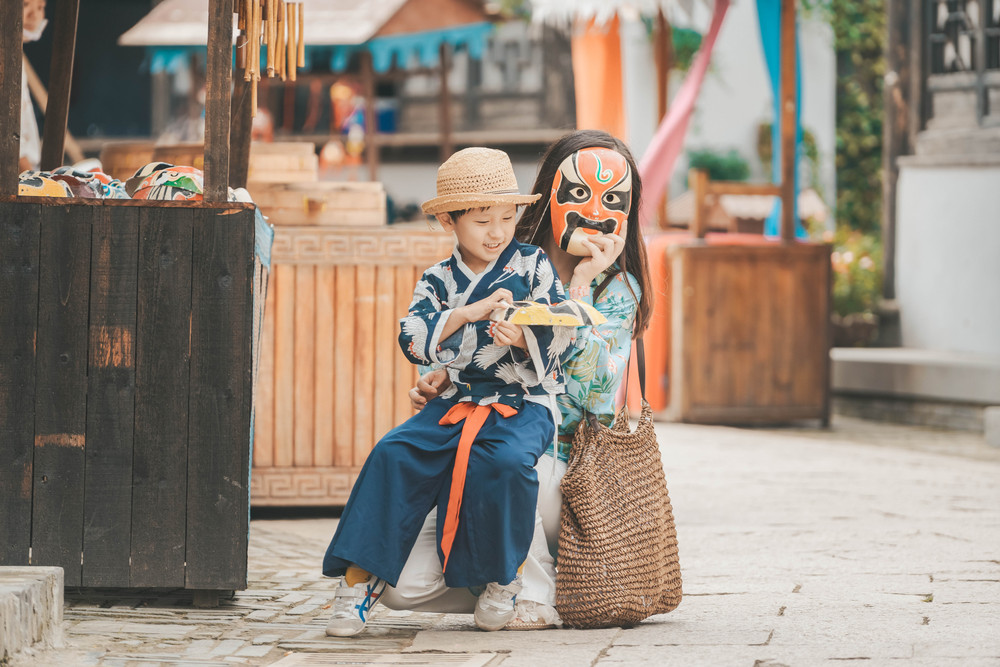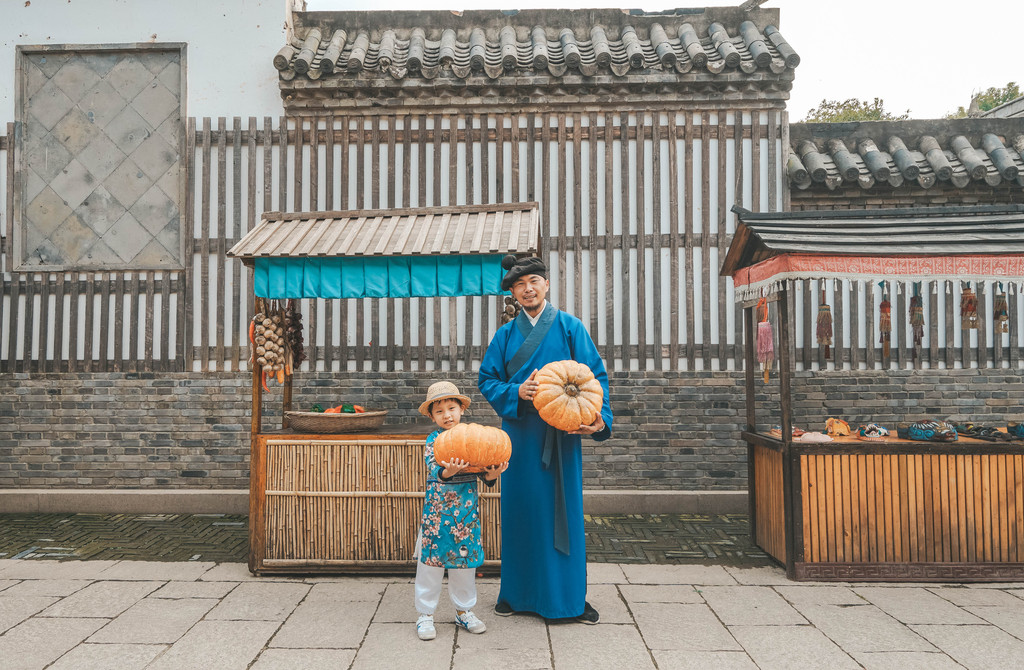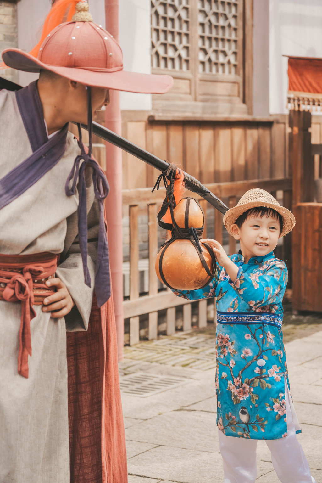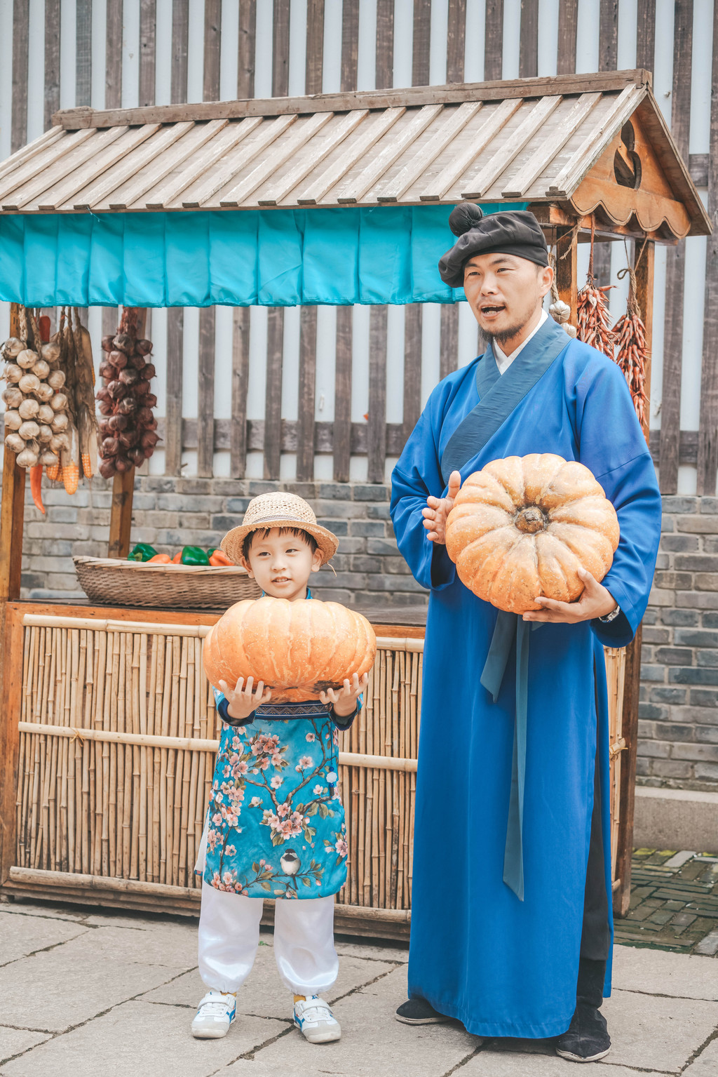 元宝尤为兴奋,对小铺里卖的林林总总深感新鲜,好奇的看着那些宛如影视剧里走来的古装人物,知道彼此的不同,从而进行一场属于他的穿越之旅。骑在马上和黑脸士兵开心合影,一边偷偷去摸士兵的长剑,接过市井大叔递来的南瓜,疑惑南瓜是真是假,碰触着“林冲”的酒葫芦想看看里面到底装了什么神奇的宝贝……