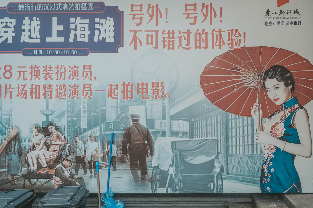 走在南京路、霞飞路等街道上,与卖报童、民国女学生、卖花姑娘不期而遇,沿街陈列的黄包车、老式汽车勾起对民国年代的无限遐想,走近大光明影院百乐门里,载歌载舞唱着《玫瑰玫瑰我爱你》的旗袍女子,一秒带你进入奇妙的民国派对。