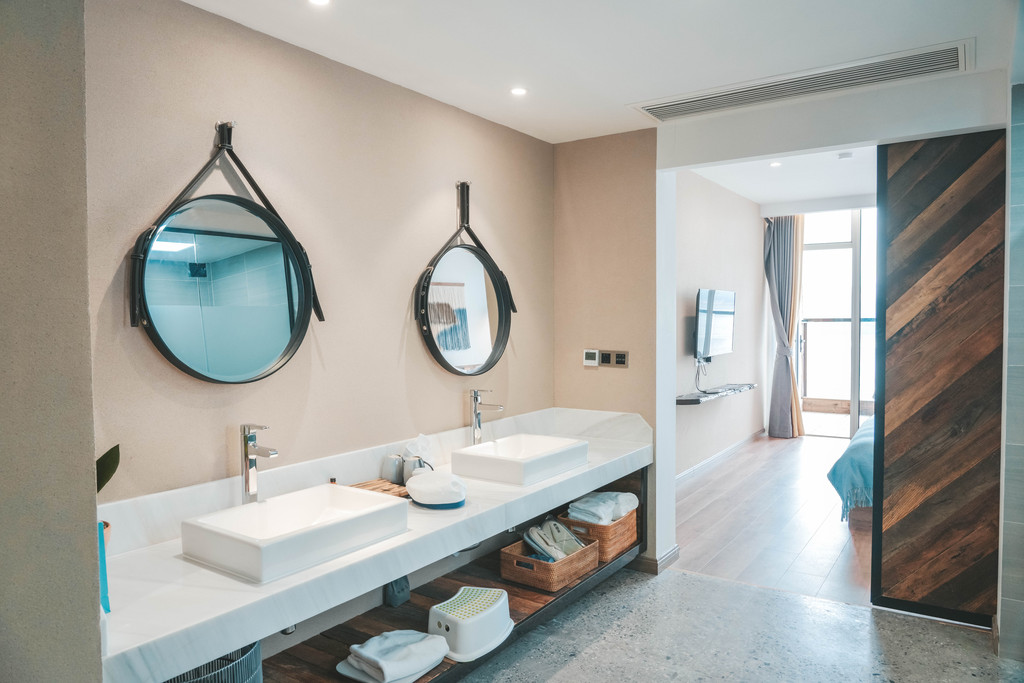 双台盆的洗手间面积宽敞,一家人洗嗽也不觉得拥挤,小朋友有专属的儿童洗漱用品,细节好评。