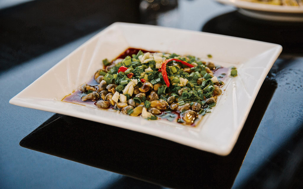 想要在吃饭的时候配点小酒的朋友可以点道葱油鲜泥螺助助兴,配着辣椒和葱花的泥螺不仅穿上了新衣,个个如玉石般晶莹剔透,品貌俱全,更在小小的壳下蕴藏了鲜美的酱汁。咬一口,小小的螺肉根本不够解馋,嘴里吃着一个,心里已经预备好了下一个,不一会儿就在大家的“攻势”下被吃得干干净净。