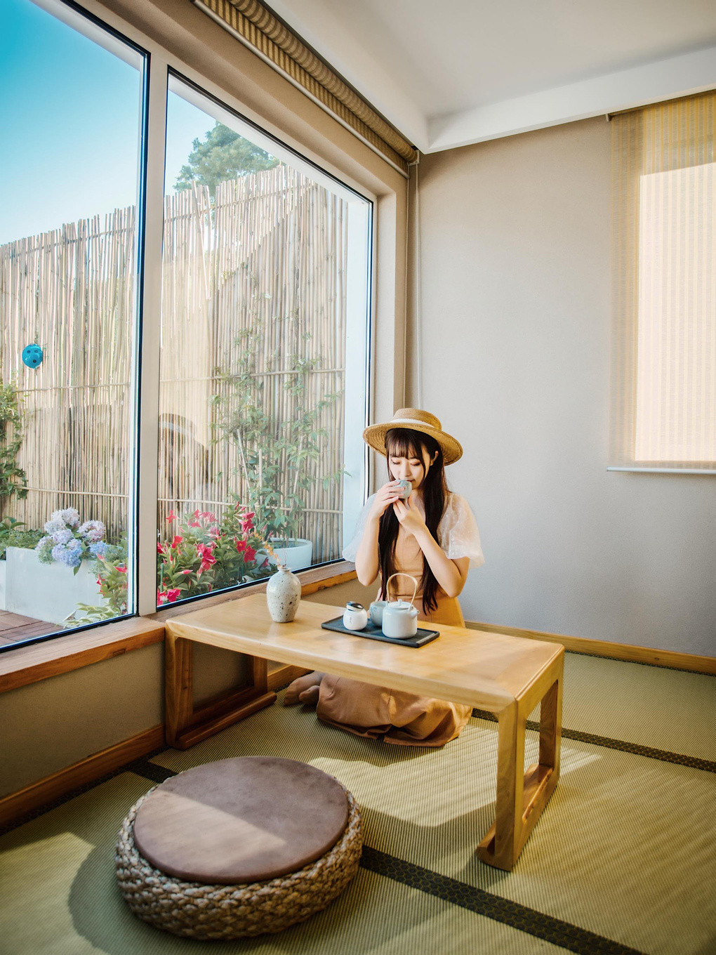 一个人的时候,看窗外夏暖花开,在茶香氤氲中感受宁静,躲过夏日的骄阳。茶室整体的色调统一,让你在一间民宿里体验中欧日三式的风格情调,即使在民宿里呆一天也完全不腻。