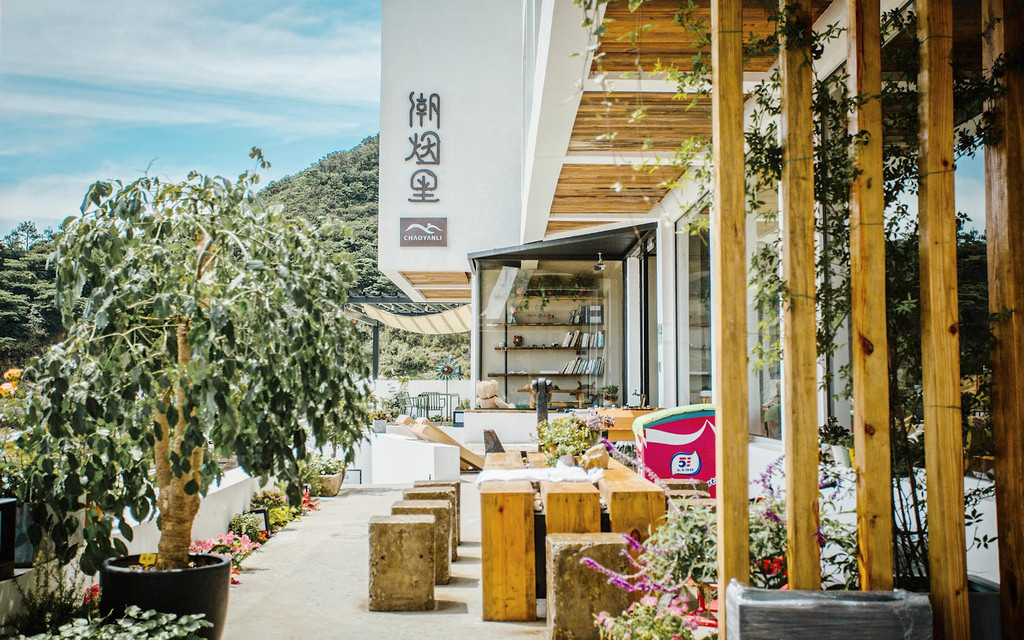 进入潮烟里之前,你要先穿过一条“千与千寻”式的换世隧道,随着另一头的光逐渐从洞口溢出,一座世外桃源也在你眼中渐渐勾勒好了模样。潮烟里圣托里尼式的白房子配合着青山绿海温柔地沿着海岸线排列着,配着远处几只不紧不慢游曳着的小船,别有风韵。