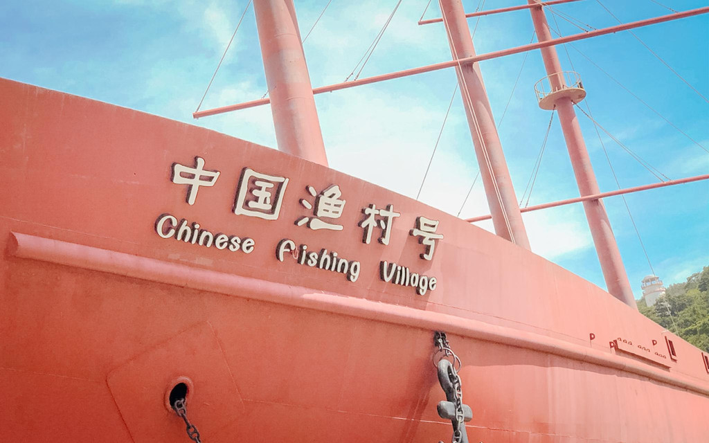 中国渔村位于石浦北侧,是一个十分成熟的度假海滩。这里不仅有皇城海滩的自然风情,沙滩边还有大型游乐嘉年华设施、欧美风情小镇等,搭配着棕榈树和游泳圈,十分有海滨风情,常有新人来此取景拍婚纱照。在这里还能品尝到最鲜的海鲜,适合休闲度假。