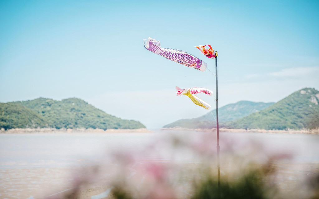 檐下风铃声清脆,藤编的桌边向日葵风车呼呼转动,远处鲤鱼旗飘飘,似乎所有的元素,都为这次避暑之旅带来了些许童趣与浪漫~