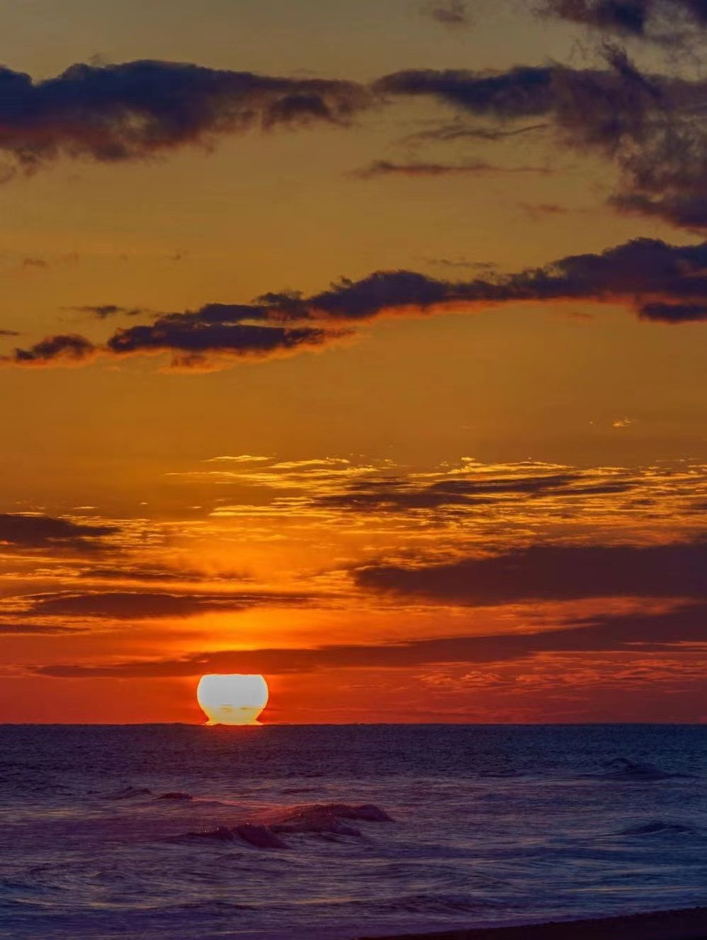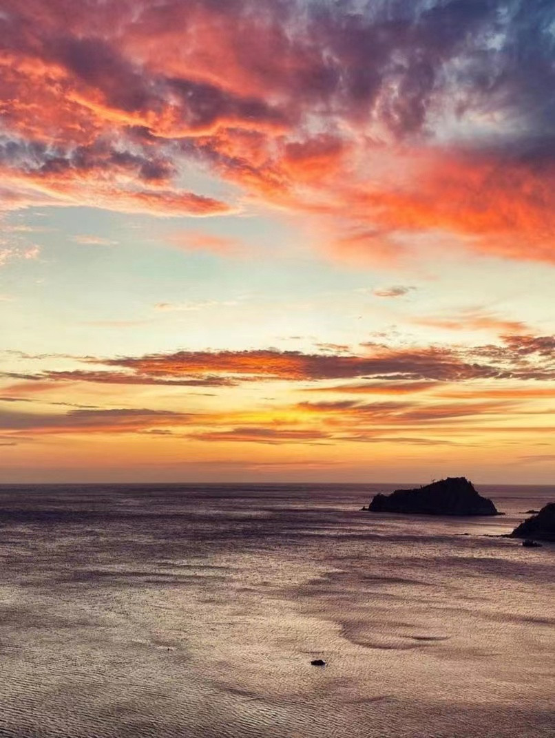 夏日的火烧云,也是一种绝,落日本就漂亮,红彤彤的太阳缓缓落入群山落进海面,再加上漫天云彩,美不胜收
