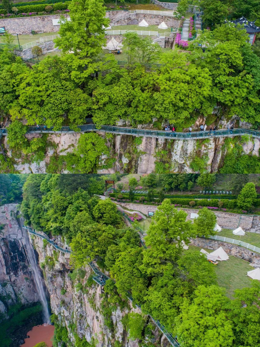 值得一说的是,玻璃栈道尽头还可以看到瀑布