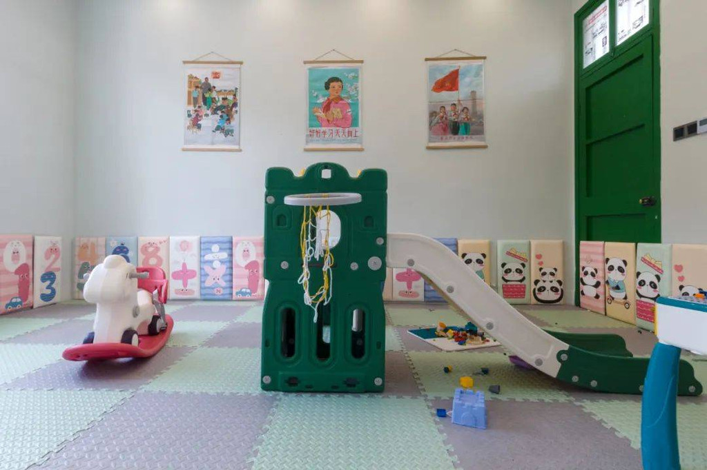 接待中心脱胎于以前的上马岱村小学,四层的教学楼还保留着绿门窗和黑板,玻璃上贴着小人书的窗户纸,让人一下子回到了童年时光。