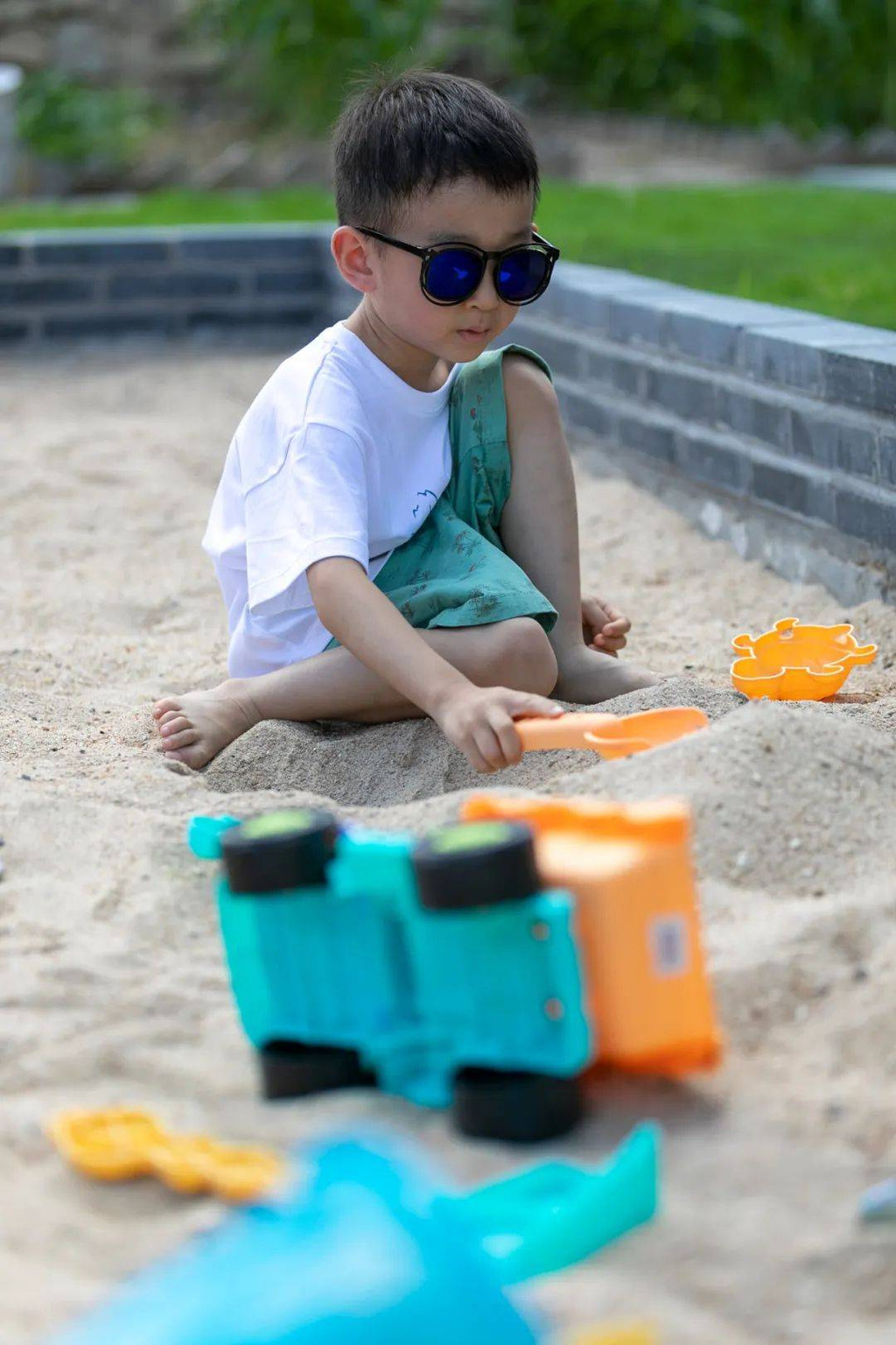 大草坪搭上天幕可以露营团建,儿童沙坑、亲子菜园让小朋友乐此不疲。