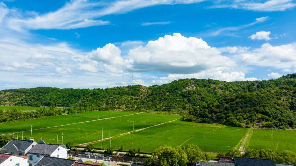 灵岩山水秀,野趣泗洲头,泗洲头镇三面环山,东临蟹钳港,北依灵岩山,空气清新、环境优美,其上马岙村山水灵秀,盛产杨梅、枇杷、桃杏梨、瓜果。白云在山头翻滚生发,阳光下稻田青翠欲滴,像极了《小森林》里的画面呢。