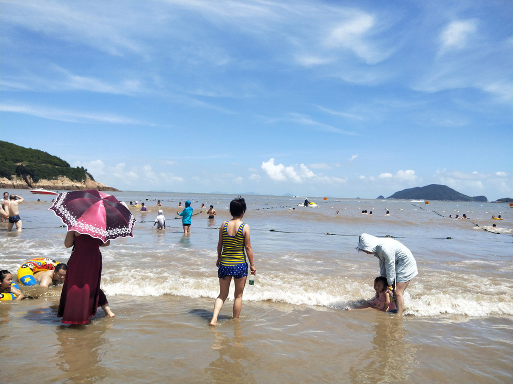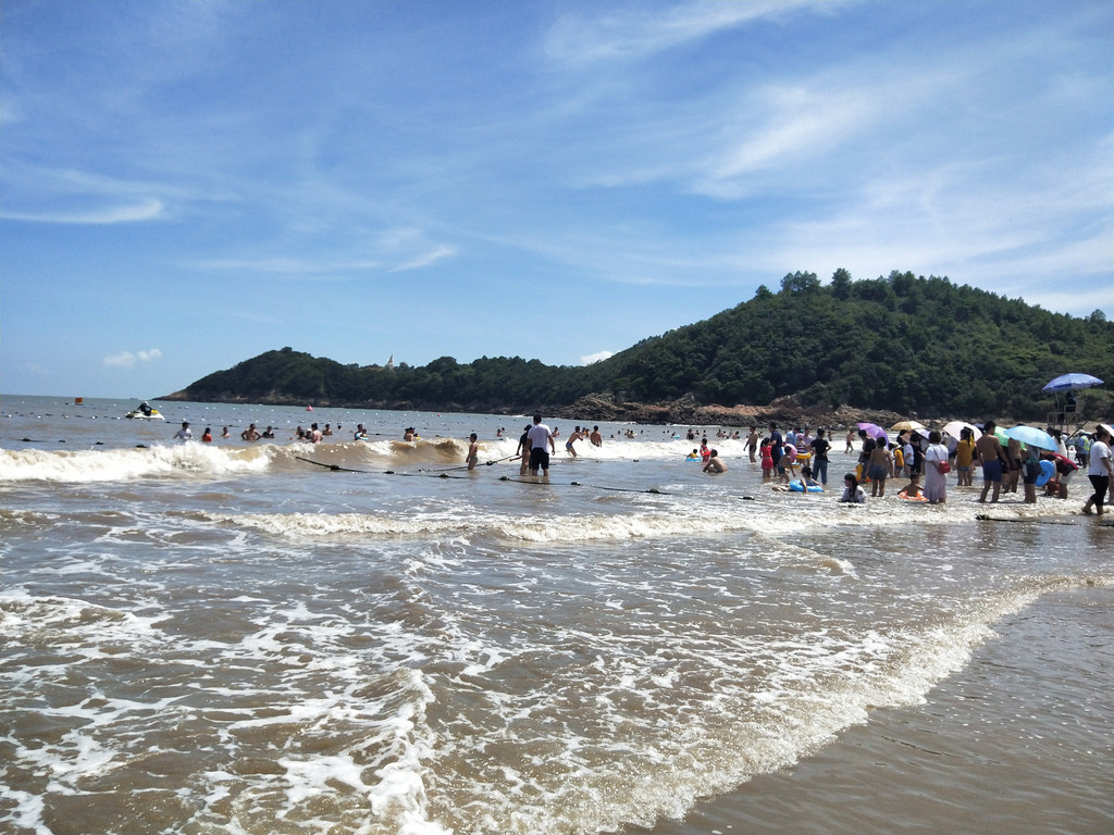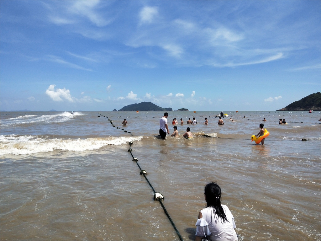 这里开辟了海滨浴场,就是1米等深浅的区域范围,一次可以同时提供2000余人游泳和嬉戏。确实,在这里游玩的人也确实很多,有的在沙滩上休憩,更多的人则投入了大海的怀抱,虽然不见得个个都是游泳能手,但是穿着泳衣在海水里泡着也是很惬意的。