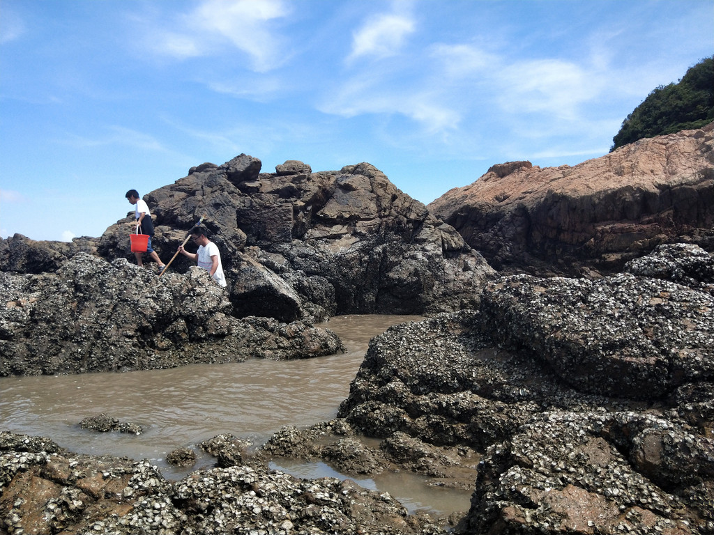 好容易把岩石堆给扒过一遍,手里的瓶子里还装着两只寄居蟹,说是离开的时候再把它们放回去,我就任由他瞎折腾了,他对这些动物的兴趣向来是很高的。