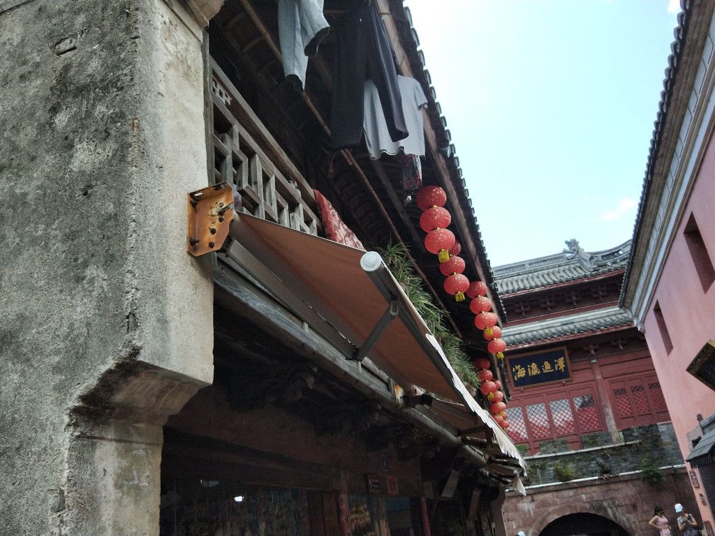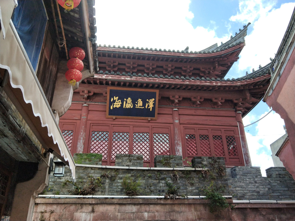 刚走上台阶,就看到右侧有一道门,上面的匾额写的是“古城沧桑”,想来是介绍古城的历史吧。走进去是一个三合院,建筑是二屋楼,仿古的建筑,但是看着还挺新,大概是新建的或是修复的。