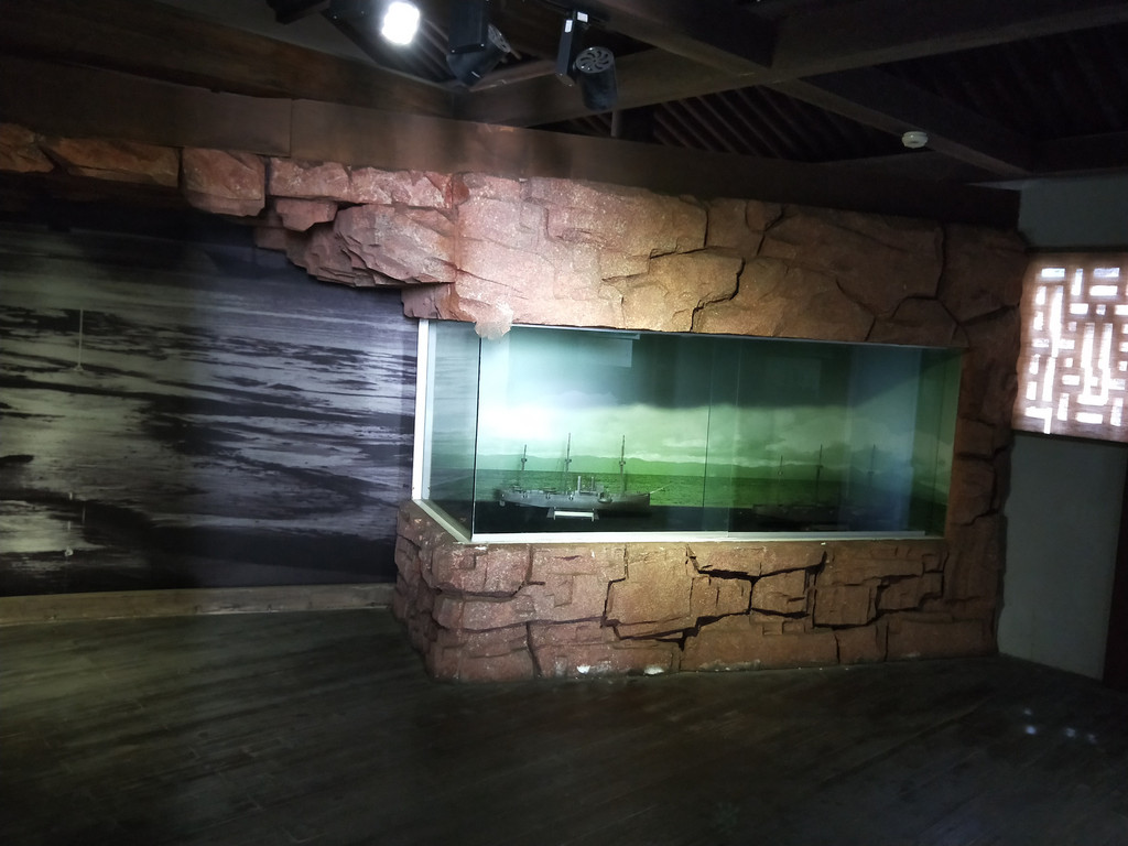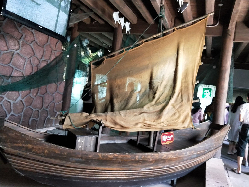 里面有一艘渔船,还有一些模型场景。原来这里还是电影《渔光曲》就是在石浦拍摄的。扮演渔家姑娘小猫的王人美当年还在这里演唱主题歌《渔光曲》。