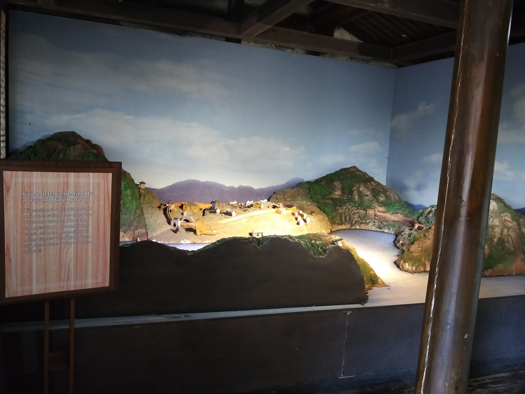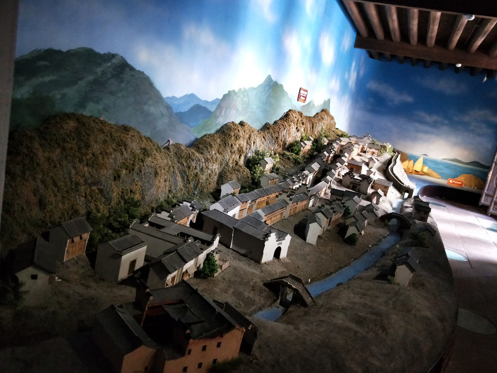 走进展馆,屏幕上正在放映祭海仪式。往里走是石浦古城的模型,整体的规模算不上很大,呈狭长的走势。