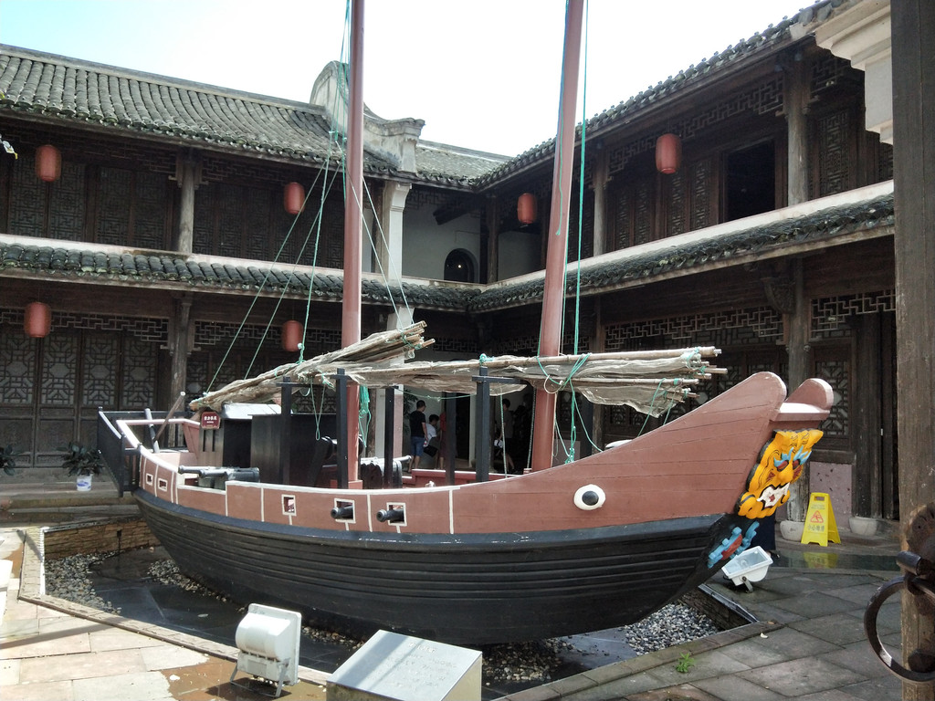 上到二楼,可以看到院子里的全貌,那艘战船这样看下去,倒并不显得寒碜了。其实船也不算小,几乎占了院子的一半面积。