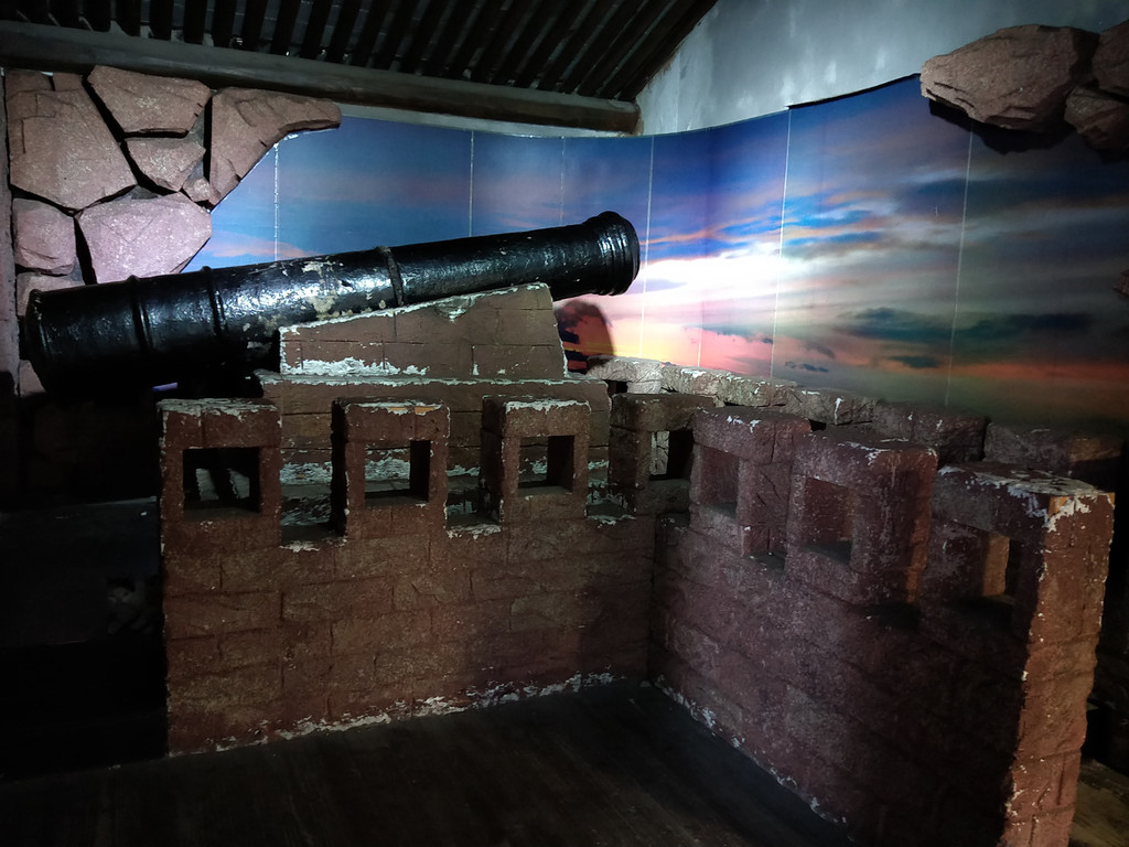 展厅里陈列了当年的兵甲和大炮,当时最著名的重武器就是红衣大炮,射程最远可达十里,在当时是相当先进的。清朝不可一世的八旗军,就吃了红衣大炮不少苦头。