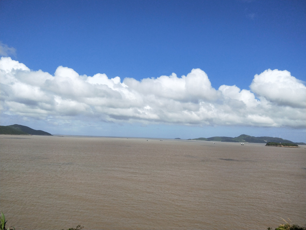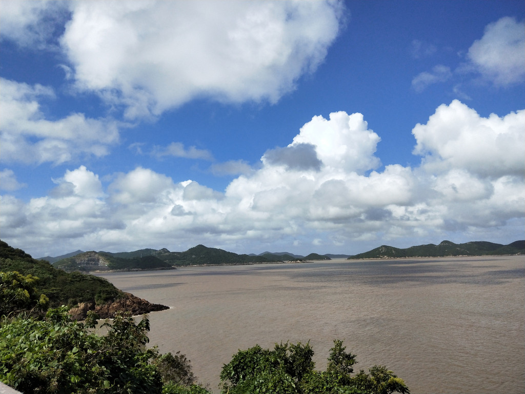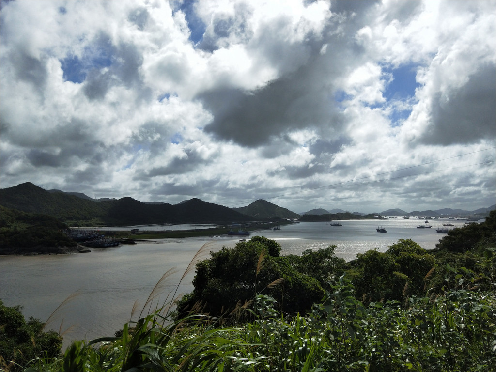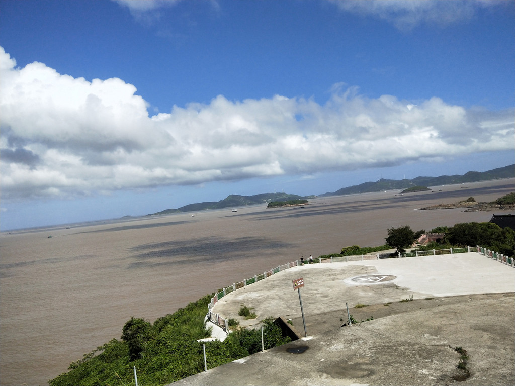 山顶是一个大平台,这也是炮台,两门铜炮虎视眈眈地正对着前方的出海口。旁边是城墙,当时是用来抗击倭寇的。旁边的墙上,刻着八个字:“海上巨障,昌壮国势”。如今当然用不着这两门炮来守卫海疆了,但历史永远铭记着它们。