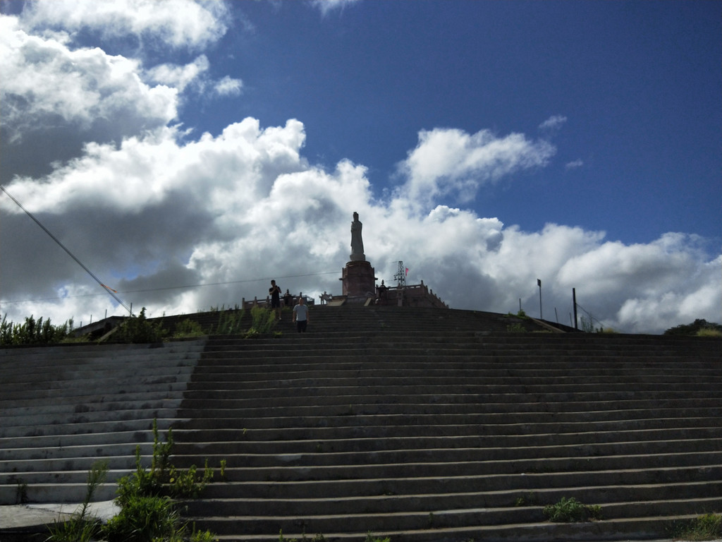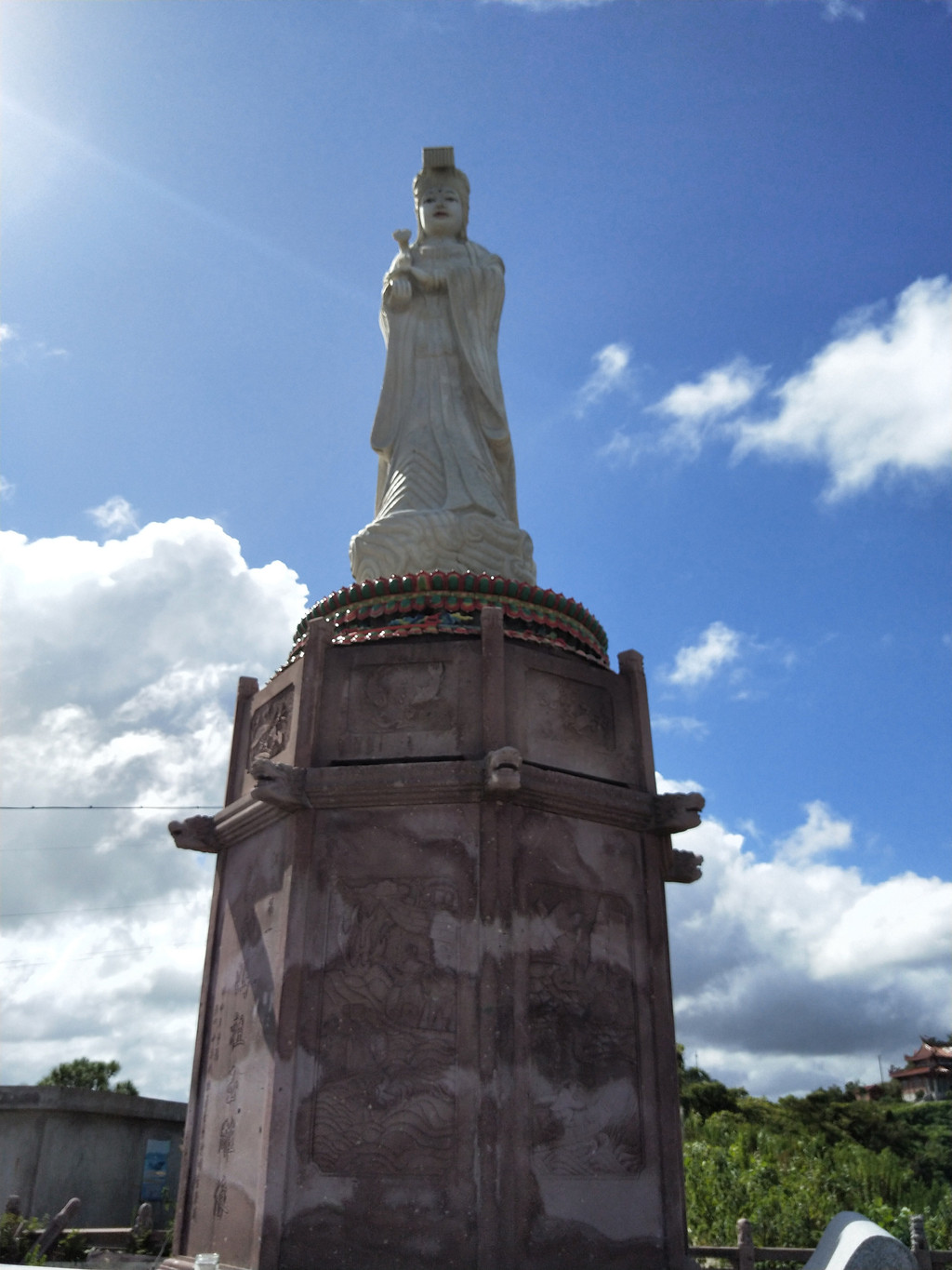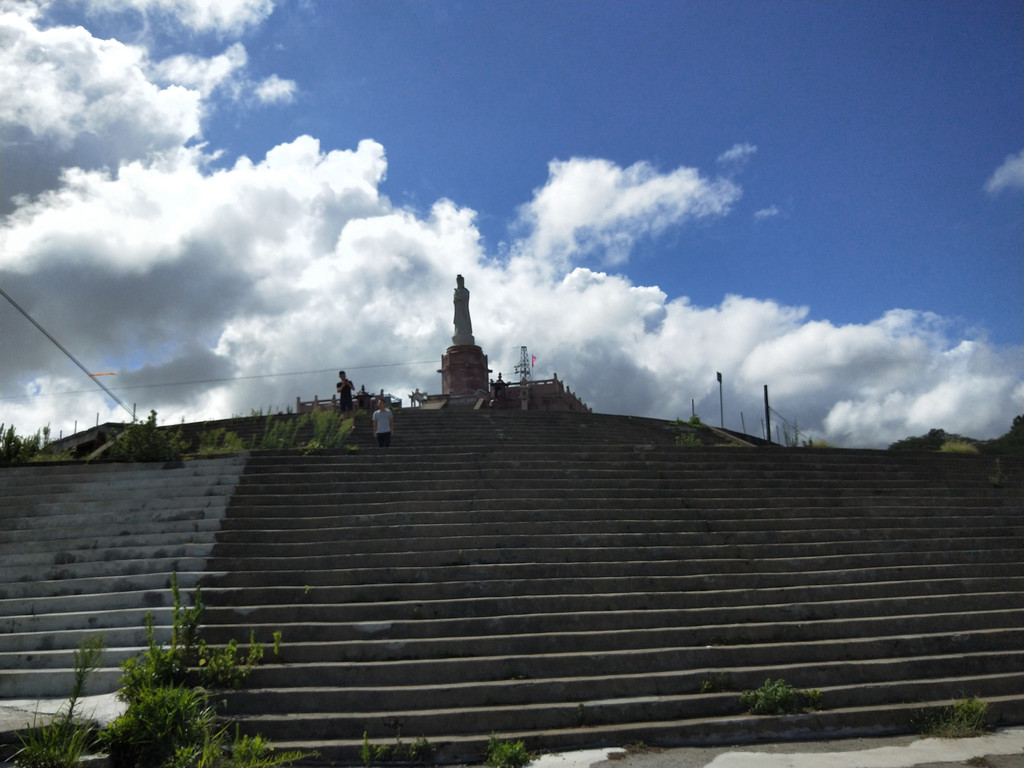 出振远城,沿台阶往上走,这段台阶有点高,山巅竖立着一尊妈祖像。她通体白色,高达10余米,面向东海,保佑着东门渔村的渔民们能够出海平安归来。