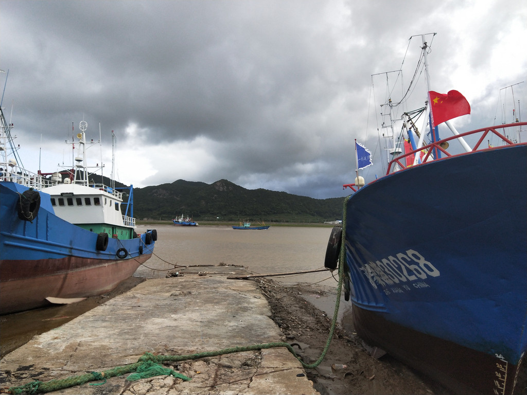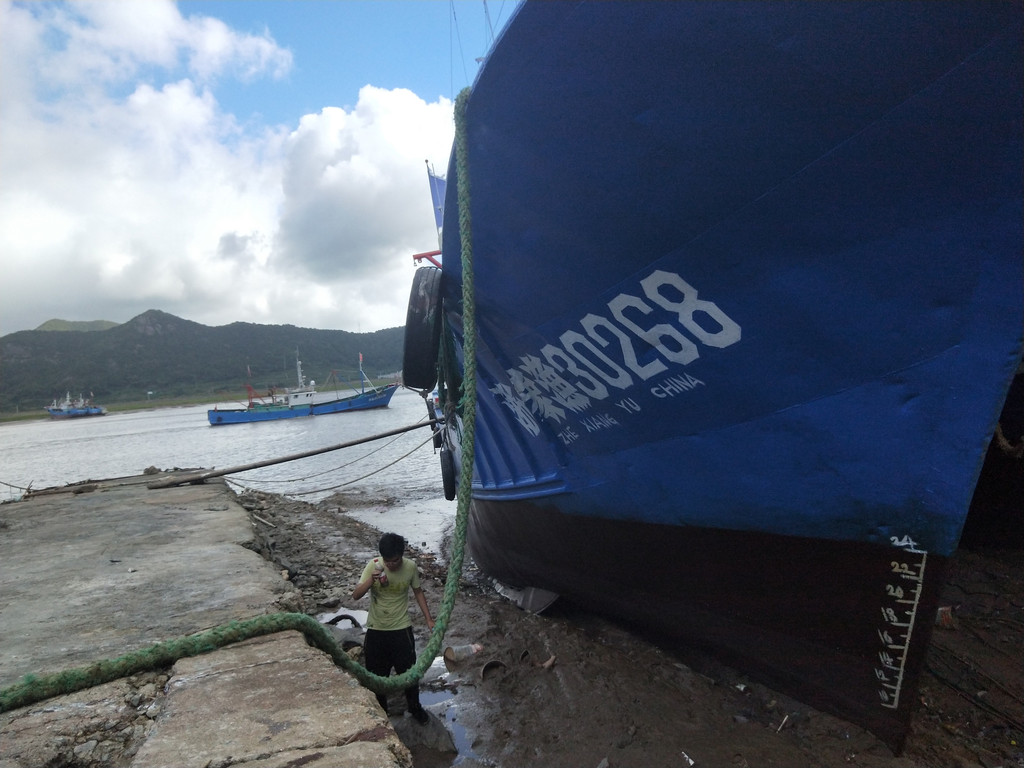 从东景庙沿路下山,就是东门渔村。小伙伴又跑到滩涂去了,我去村里转了转,发现居然村里还有庙,不过今天没开放。我看了看公交车的末班车时间,问了一下旁边修补渔网的村民,他们告诉我公交车上岛只有这一条路,所以看到车往岛上开就在站台等着。于是,我卡着点儿回到站台,看到公交车上岛,急忙把小伙伴叫了上来,乘车离开东门岛。司机看了小伙伴一眼:“这么不小心,摔跤啦?”我们也只能赧然地承认。