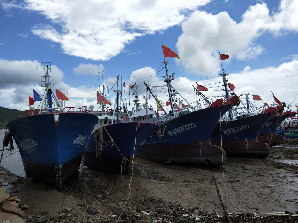 小伙伴仿佛来到了他的乐园,守着这片滩涂就不动窝了。我则贪看着海滨的渔船,沿着海边的道路一路走过去,一眼望不到头的渔船旌旗招展,这壮观的景象,难怪被称为“浙江渔业第一村”!