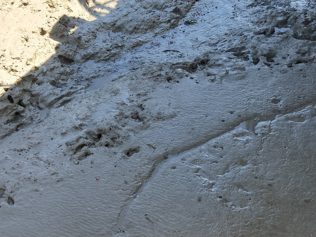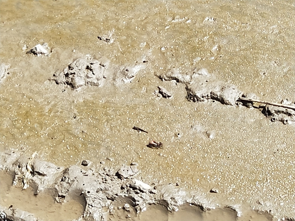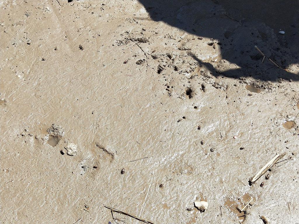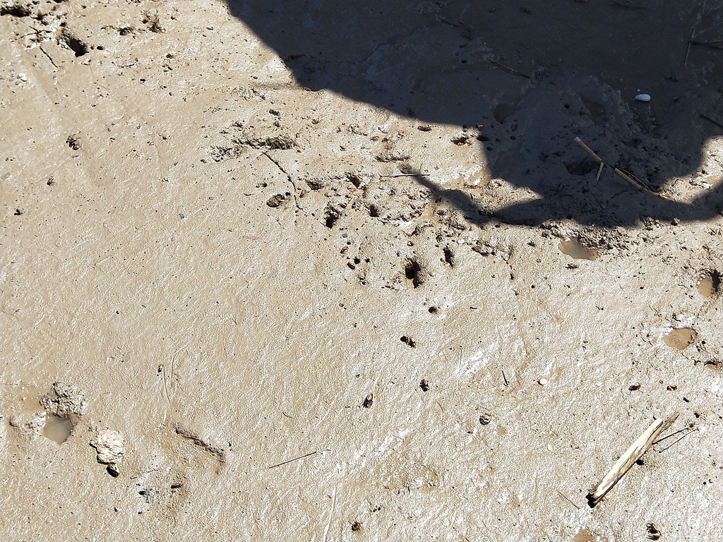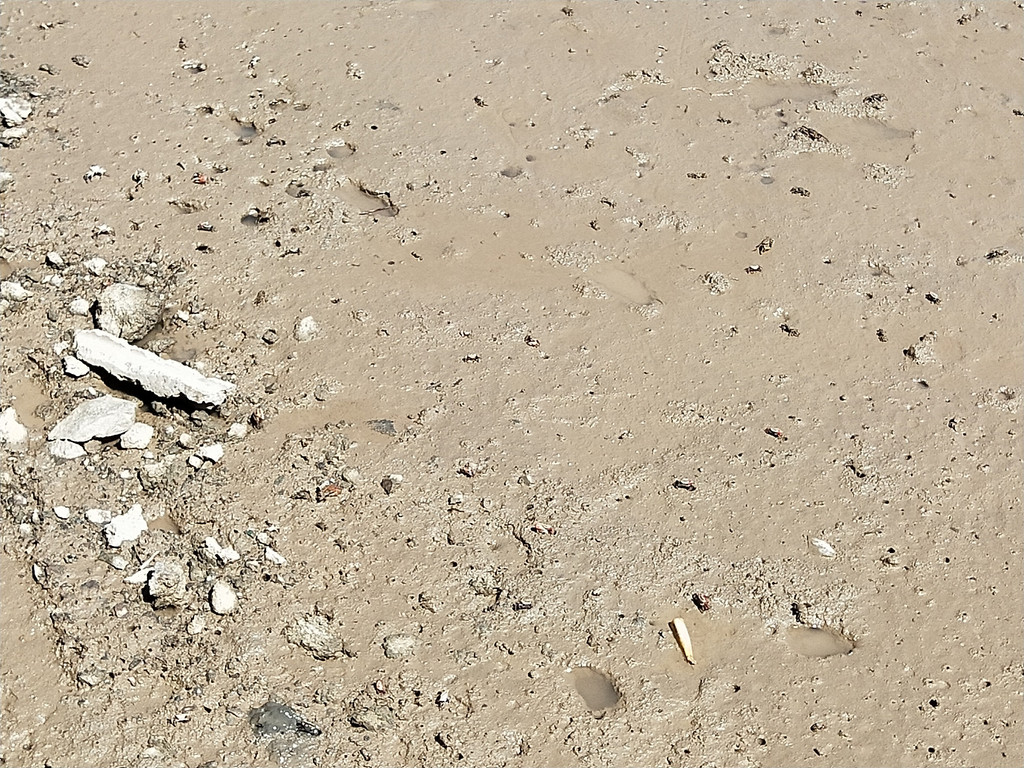 “这里的海洋生物太丰富了。”小伙伴十分兴奋,把他的成果放在一块石头上展示,有寄居蟹、招潮蟹、小螃蟹……居然还逮住了两条弹涂鱼,大约费了不少功夫。我低头看着他的鞋子,得,全泡在泥里,整个儿被泥给裹了一层。至于裤管,小腿部分也全都是泥浆,连裤腰上都溅到了泥,估计不小心滑过一跤。