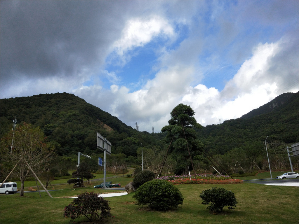 史家山应该算不上旅游景点,虽然这座山也挺青翠的。高速公路从山体中穿过,这就是史家山隧道。山脚下是一片相当大的草坪,小草们不用太多护理,长得还挺葱翠。花坛里的花也很精神,这主是人工培育好的搬过来的。其实撒把诸如波斯菊、硫华菊、金鸡菊、百日菊之类的种子下去,还省下了园艺工人操心。