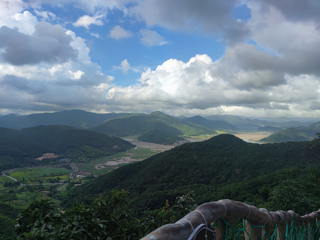 抬起头来发现刚刚雨后的天格外的蓝,白云朵朵。一缕阳光透过云雾照射在灵岩山的小山头处,显得格外好看~