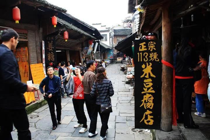 芙蓉镇最精华的一段,就是从穿越小镇里的石板街,石板街的明星米豆腐,是当地人很喜爱的小吃店,朋友说一定要尝尝他家的米豆腐、芙蓉镇米粉,果然很有特色,米豆腐拌着湘西正宗的酸萝卜丁,着实很滑口。点了不少小吃,味道都很不错,这家餐厅已经开了20几年了,做的都是芙蓉镇本地人的生意,物美价廉,湘西着实是一个让人时时刻刻有惊喜的地方。还是那句话,小镇的老百姓实在是太淳朴,结账后人均消费10几块,简直是惬意的不要不要的。