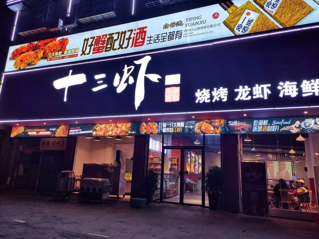 连夜赶过来,自然是想到吉首吃宵夜,吉首晚上宵夜很热闹。当地朋友带我们去了乾州新区最火的龙虾店:十三虾宵夜店。