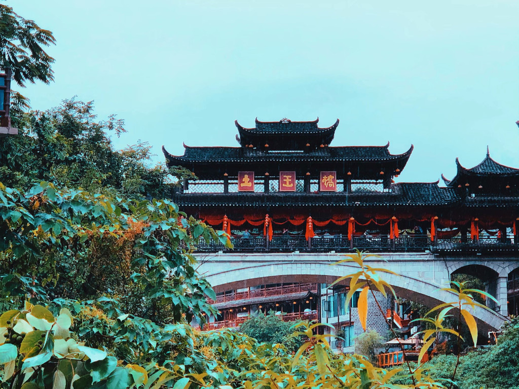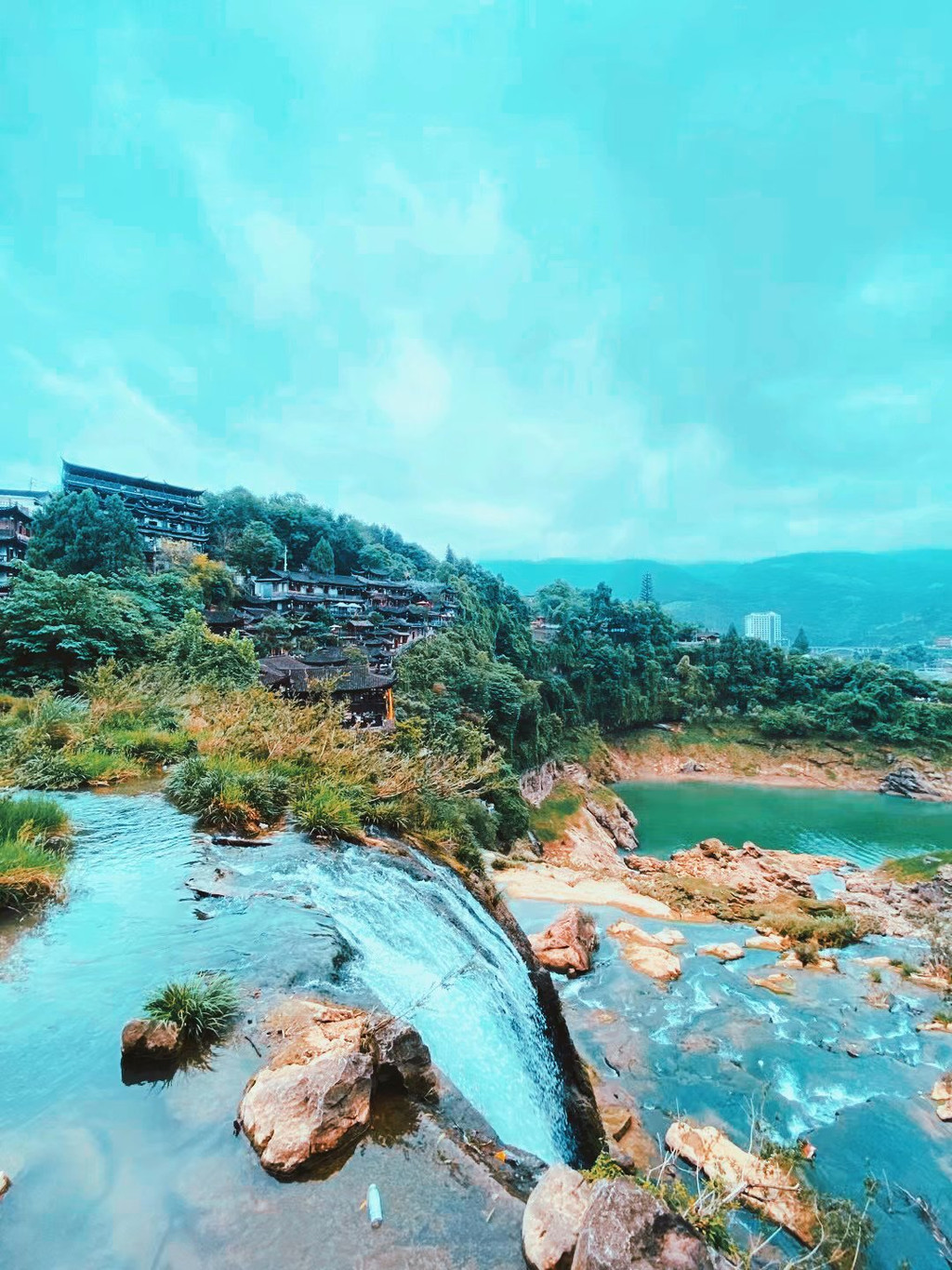 这是一座有着两千多年历史的古镇,而且是汉高祖时期设立酉阳县时的县治所。到了后晋时代,这里建立了土司王朝,王村又成为“土家之源,土王之都”的土家人聚居的地方。行走在芙蓉镇的大街上,游客们都有了穿越感:几百年前的房屋,弯弯曲曲高低不平的石板路,淙淙流淌的小溪,河流上呀呀转动的水车以及更远处呼啸而下的大瀑布。时下虽然是春天,身在古镇,却有着几分冷意和沧桑感。