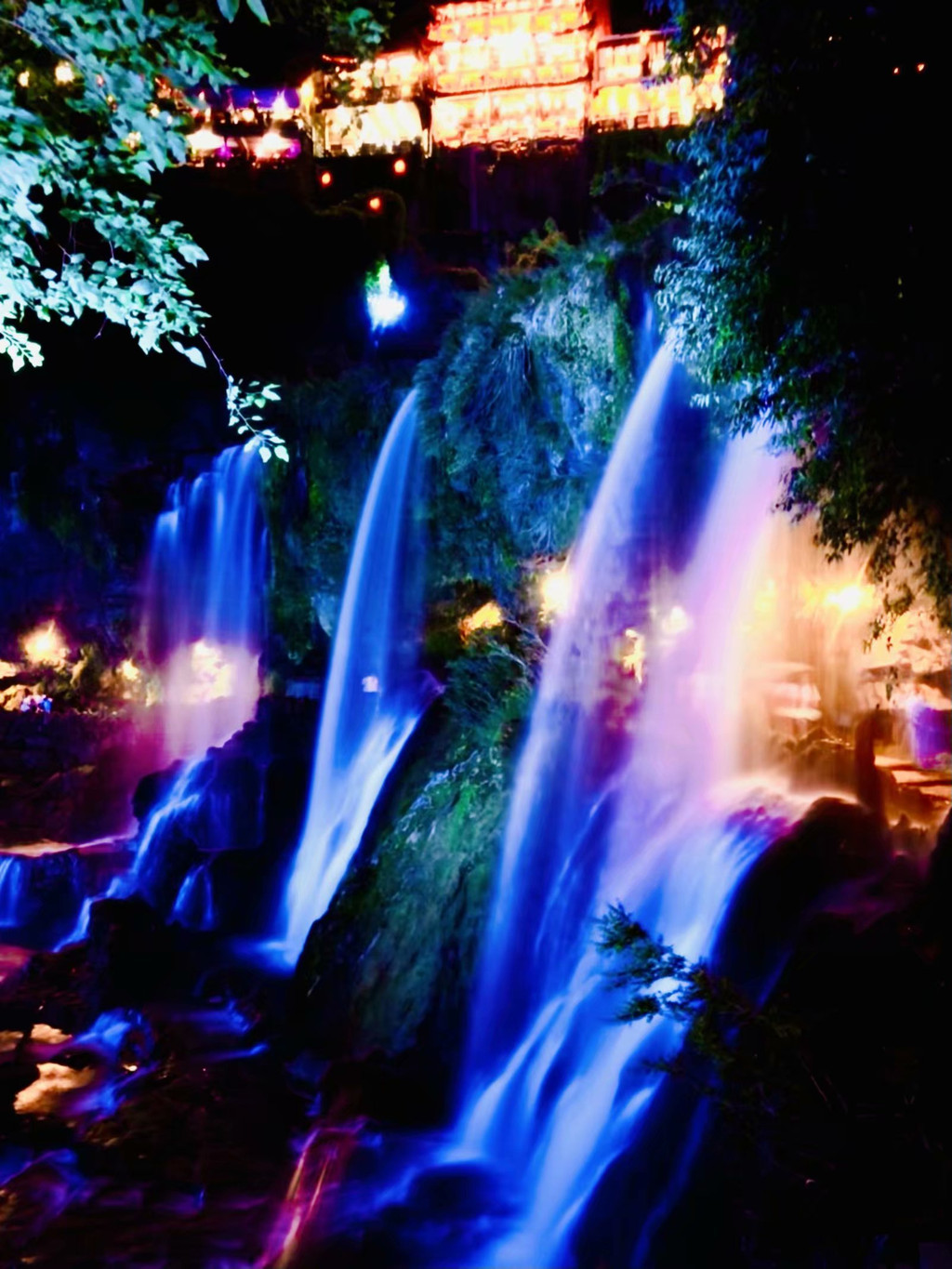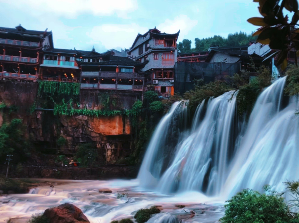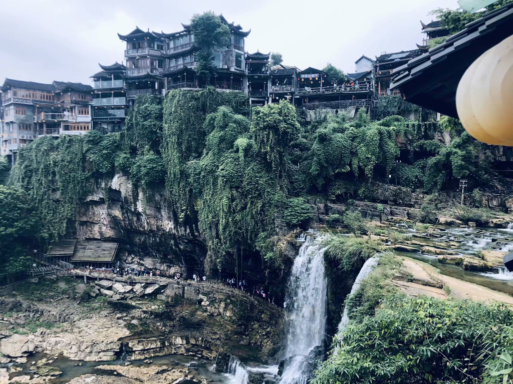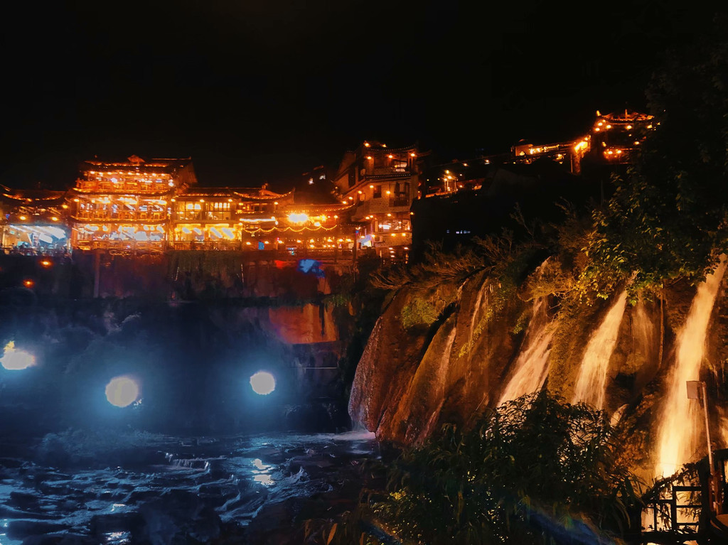 走过大街,便到落脚地——土行王宫瀑布客栈,由于古镇的火爆,紧抢慢抢终于抢到最后一间280度观瀑布家庭房,一个人虽然略显奢侈了,但还是深深沦陷在瀑布的美景中,倒也觉得值得。