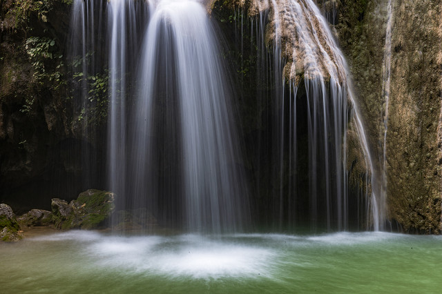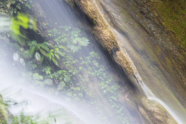 据说晴天的时候,在早8:00~11:00这个时段,阳光照到七彩瀑,瀑布上喷出的水花水珠会折射出漂亮的七彩色,那些赤橙黄绿青蓝紫点缀白色的瀑布,让它除了自然美之外,又多了些童话般的浪漫和梦幻。很可惜我到的时候天下着雨,没有遇上七彩光,留点遗憾,下次再来。