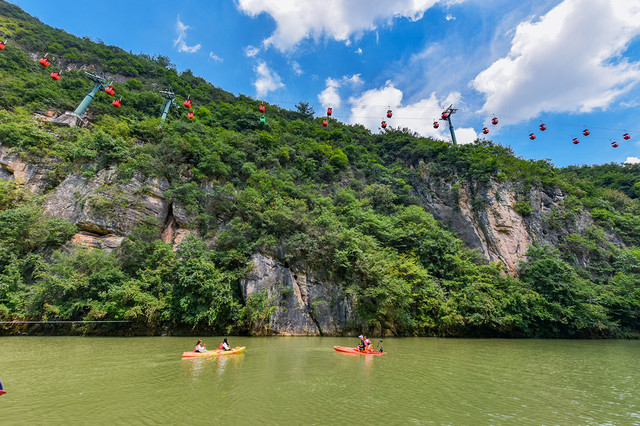 进入香水河景区,有缆车深入河谷。数不清的古树名木,山峦,峡谷,奇石,绝壁,溶洞,瀑布,溪流起起伏伏,高高低低,层层叠叠,立体层次感颇强。景区山形奇特,陡壁如削,这里是典型的喀斯特地貌,岩溶,洞穴,地下河等等层出不穷。