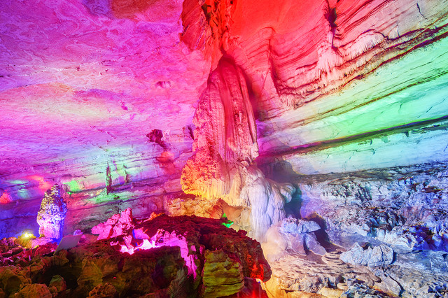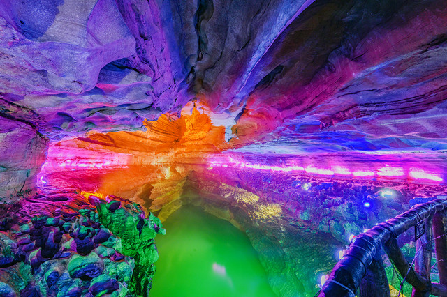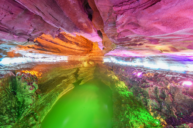 洞里面,历经亿万年的各种暗河千姿百态,精美绝伦的石笋,钟乳石随处可见。洞中跌宕起伏,洄潭密布,姿态万千。