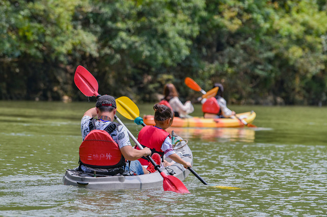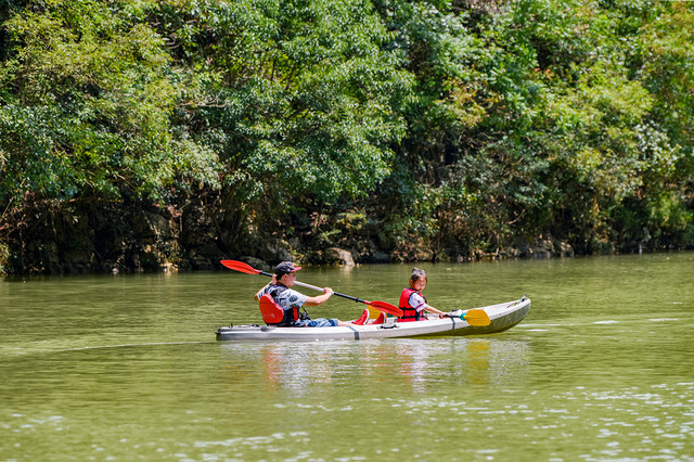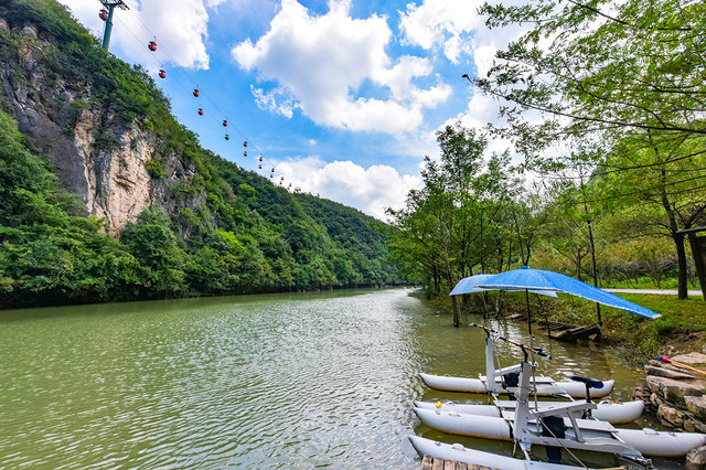 古山寨博物馆就处在茅坪河边,而茅坪河则是漳河的重要支流,除了如画风光四季不同外,这里也有很多水上游乐项目,舫船,竹筏,快艇,乌蓬船等等,人在船上走,如在画中游。