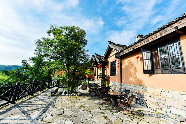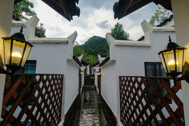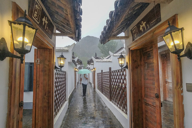 晚上住宿七彩山庄民宿,它依香水河风景区而建,坐拥景区风光,民宿本身也是颇有特色。粉墙黛瓦,青石板路,木栅栏,颇有点徽派建筑的美好。