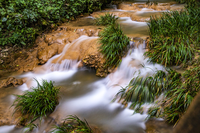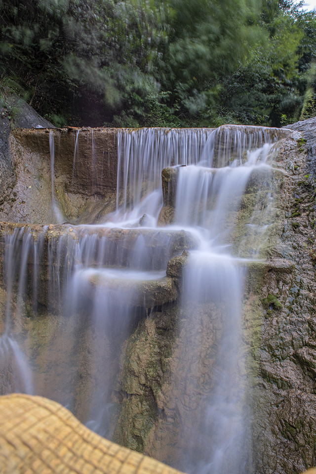 沿着步道向前,微风轻轻拂过脸庞,耳边轻快的虫鸣鸟叫,饱含超浓负氧离子的空气让人一秒心旷神怡。再往前,舒缓的河流突然就换了副面孔,平静的河水突然就有了如雷的声响,然后就能看到瀑布。香水河里大大小小的瀑布颇多,三叠瀑布,雄鹰瀑布,凤尾瀑布,,药仙瀑布,织女瀑布,手扳岩瀑布,象牙瀑布,香水瀑布等等,但最最奇特的还得数七彩瀑。