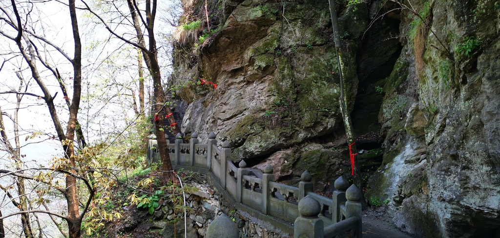 南岩宫(又名紫霄岩、独阳岩,因为朝向南方,所以又叫南岩),道教尊为真武神得道飞升之圣地。南列天柱诸峰,北瞰五龙顶,东有展旗峰,西有飞升台。这里峰岭奇峭,林木苍翠,上接碧霄,下临绝涧,是“气吞泰华银河近,势压岷峨玉垒高”的胜境,为武当山“三十六岩”中最美的一岩。
