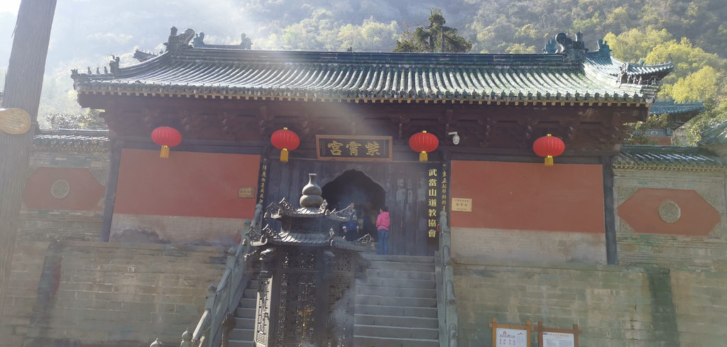 紫霄宫,又名“太元紫霄宫”,明代宫观建筑,位于湖北省十堰市丹江口市境内的武当山。紫霄宫坐落在武当山的主峰——天柱峰东北的展旗峰下,占地面积约27.4万平方米。面对照壁、三台、五老、蜡烛、落帽、香炉诸峰,右为雷神洞,左为禹迹池、宝珠峰。周围山峦天然形成一把二龙戏珠的宝椅,明永乐皇帝封之为“紫霄福地”。紫霄宫是武当山保存较完整的皇家庙观建筑群。同时也是武当山保留比较完整建筑群的重要组成部分。紫霄宫为武当山历史上的道教宫观之一,属全国道教重点开放宫观。1932年,第二次革命战争时期红三军司令部所在地,贺龙元帅曾居此。
