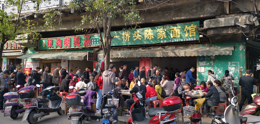 特意驱车来到汉江大桥下,这里有当地最负盛名的牛油面。