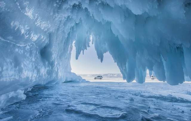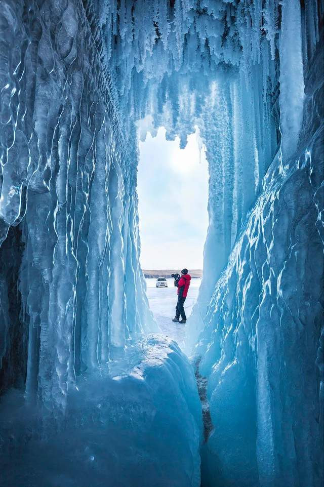 蓝冰无论是单看,还是融于岩洞、湖泊,都美得让人心醉。